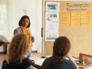 Briefe vom Amt, Vorträge voller Fachbegriffe, medizinische Befunde: Jede:r von uns hat Sprache schon einmal als Hürde erlebt. Für viele Menschen in unserer Gesellschaft ist sie ein beinah unüberwindbares Hindernis. So erlebte es Krishna-Sara, als sie vor einiger Zeit ehrenamtlich eine Frau mit körperlicher Beeinträchtigung und mit leichten Lernschwierigkeiten beim Schreiben am PC unterstützte. „Durch sie habe ich gelernt, Worthülsen zu entlarven“, erzählt Krishna-Sara. „Und manchmal, wenn ich einen Fachbegriff verwendet habe, hat sie mich gefragt: Was heißt denn das genau? Kannst du das einfacher ausdrücken?“ Krishna-Sara fand Spaß und Sinn darin, einfache Umschreibungen für Fachbegriffe, aber auch für gängige Begriffe zu finden – die Idee für ihre Agentur Textöffner® war geboren. Seit dem Jahr 2013 arbeitet sie nun als Trainerin und Übersetzerin. Textöffner® übersetzt Texte aller Art in Leichte und in Einfache Sprache. In den Seminaren lernen Menschen, klar und verständlich zu schreiben und zu sprechen, damit sie besser verstanden werden.